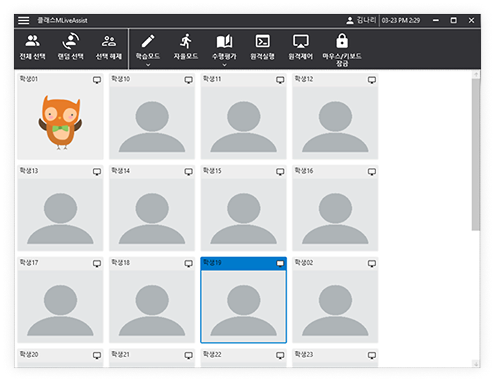 | 발표자 지정 | 학생을 발표자로 지정하여 학생 주도 학습이 가능합니다. |